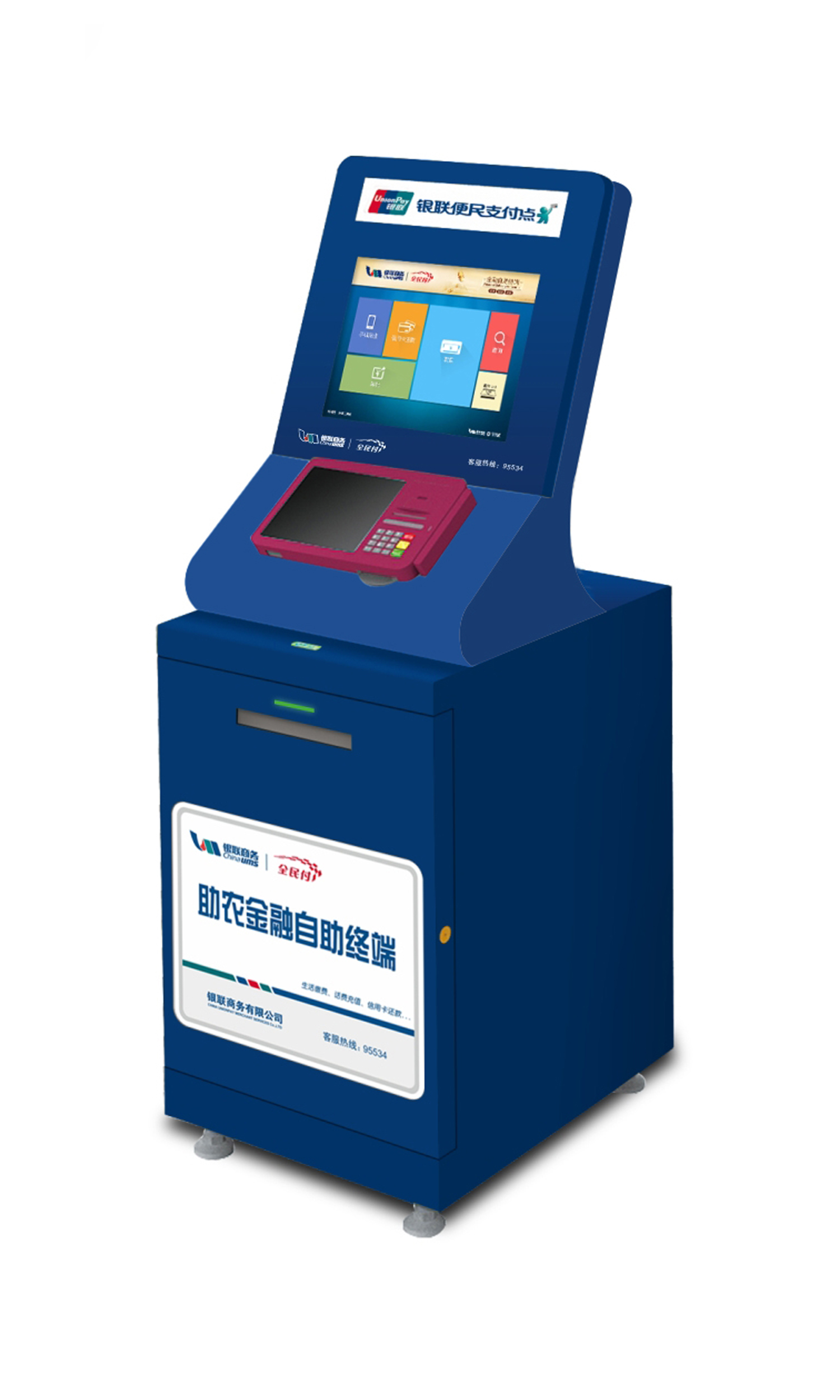 助农金融自助终端是UPAY钱包自主研发的集金融服务及便民支付为一体的创新产品,,, 设备体积不到传统ATM大小的二分之一,,,通过冠字号记录跟踪,,,避免假钞流通,,,减少误付现金引起的纠纷等。。。
